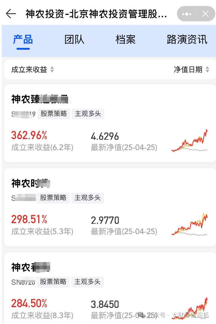 私募排排网显示,陈宇的神农投资展示业绩的三只产品,年化收益最高的30%,年化收益最低的17.65%。在私募大佬中这样的业绩算是很能打的!