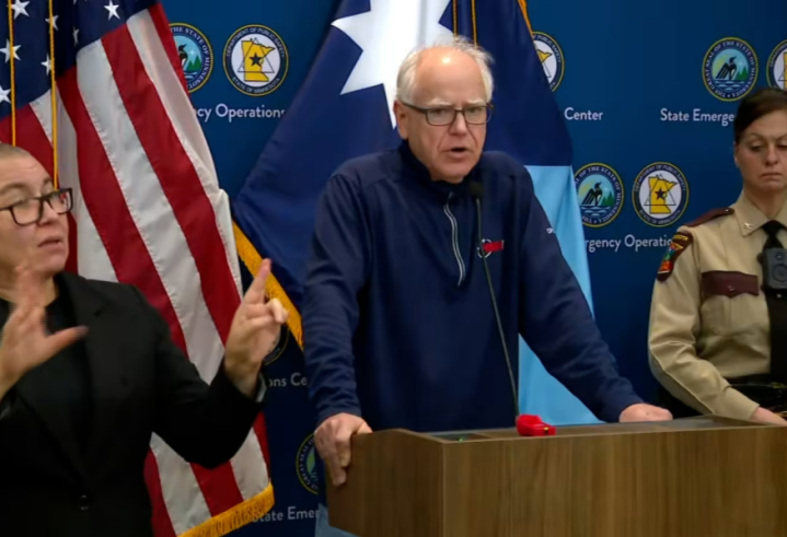 当地时间1月7日,明尼苏达州州长蒂姆·沃尔兹召开新闻发布会。图源:美媒