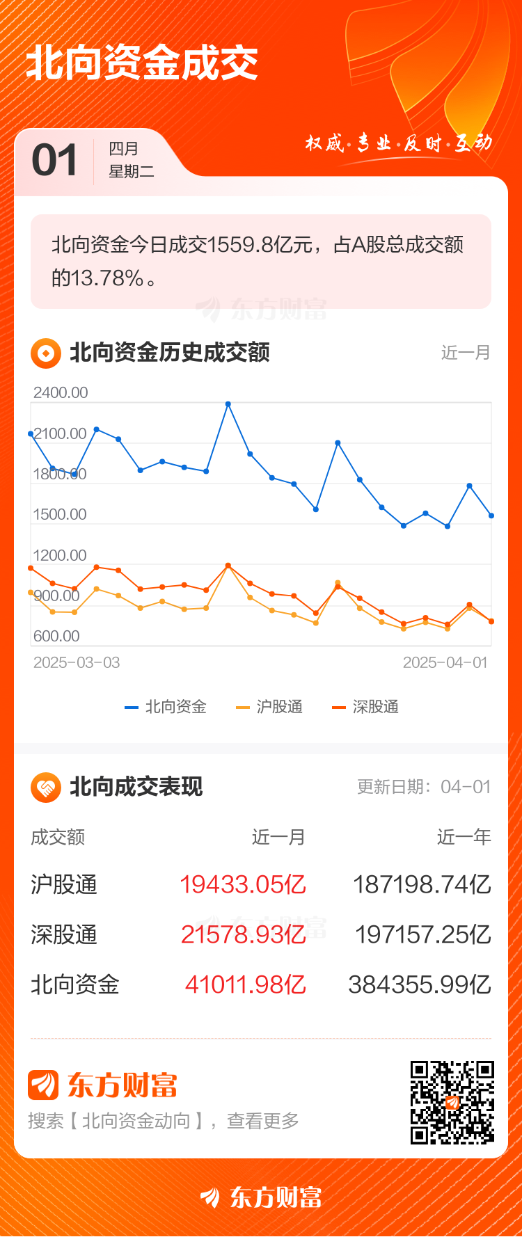 交易所最新数据显示十大优质配资平台:,4月1日北向资金共成交1559.80亿元,占两市总成交额的13.78%。